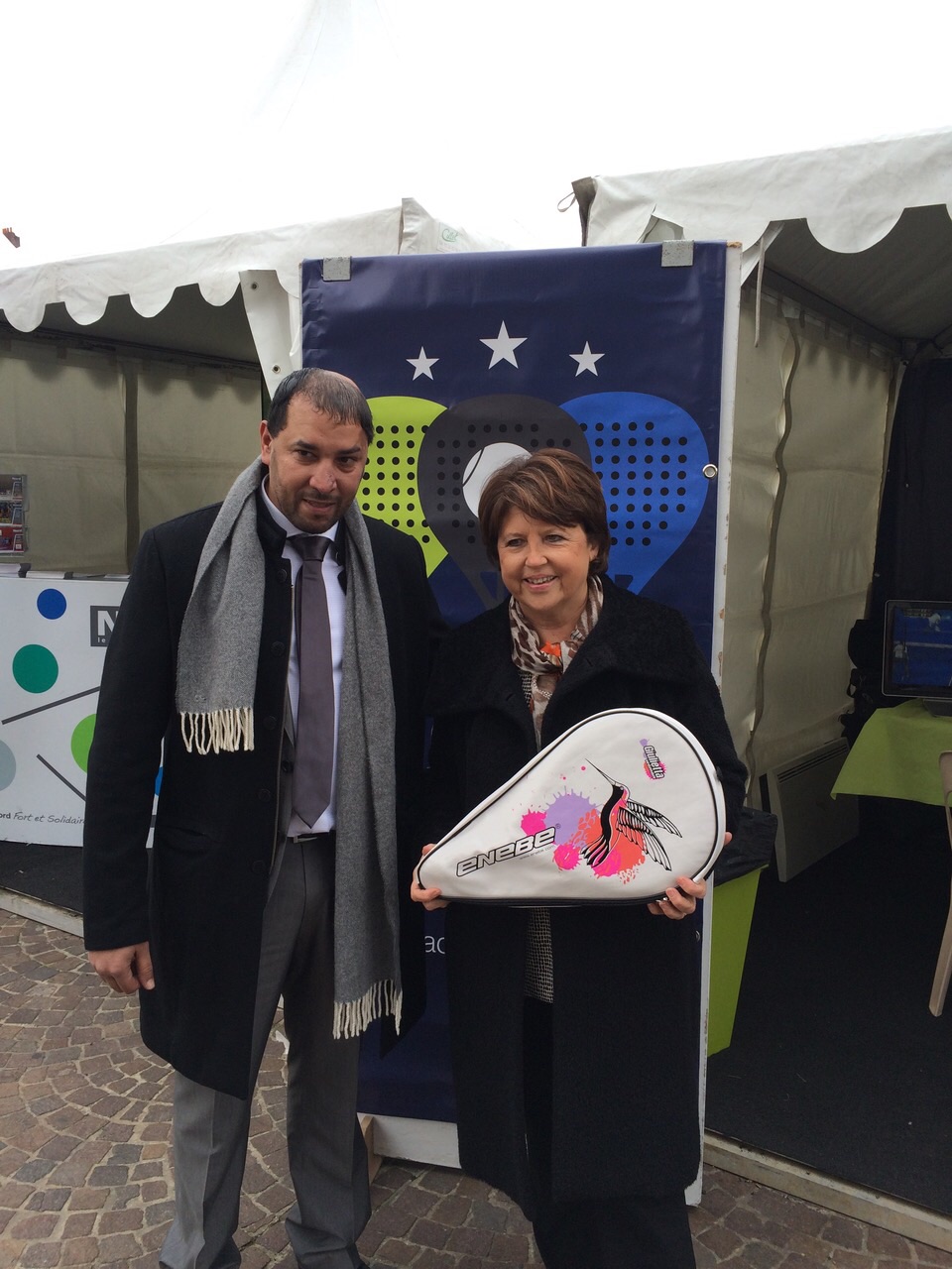 - La alcaldesa de Lille junto a la Pista pádel de Verdepadel